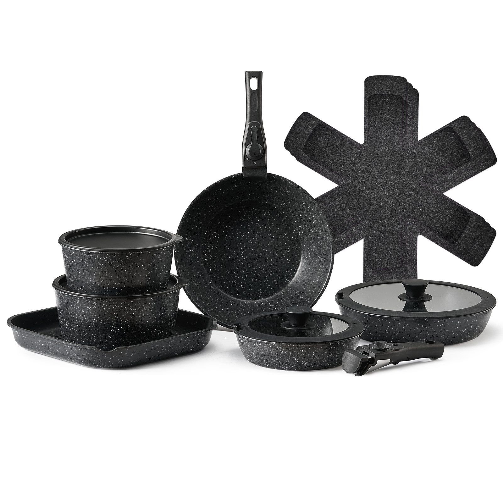 17 Piece Pots and Pans Set Granite Nonstick Kitchen Cookware Induction Black