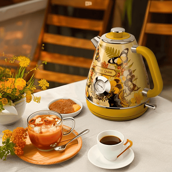 [Fast boiling & Large capacity] -Rated at 120 volts and 1,200 watts, the Hazel Quinn kettle can boil 1.7 liters of water in 4-5 minutes, up to 8 cups. Get ready to get enough drinks for your whole family.