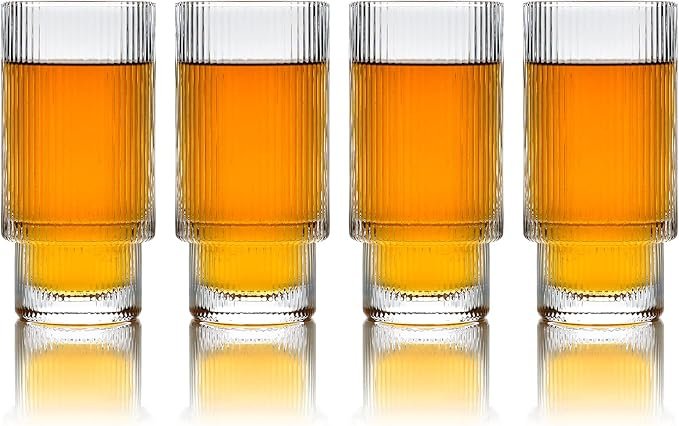 Home > Greenline Goods Ripple Drinking Glasses - 12 oz Modern Kitchen Glassware Set Unique Vintage Cups For Weddings, Cocktails Or Modern Bar - Set of 4